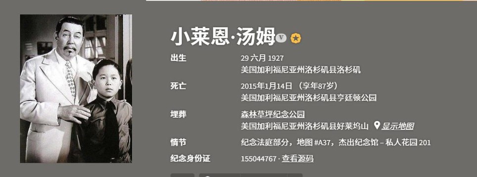 小莱恩·汤姆 (Layne Tom, Jr) 出生于洛杉矶,是 1930 年代和 40 年代的童星。您可能还记得他在与多萝西·拉穆尔和乔恩·霍尔合作的 《飓风》(1937 年)中饰演真子。他还在《 奥运会上的陈查理 》(1937 年)、檀香山的陈查理 (1938 年)和 《陈查理的谋杀巡航 》(1940 年)中扮演了 3 个不同的陈查理儿子。