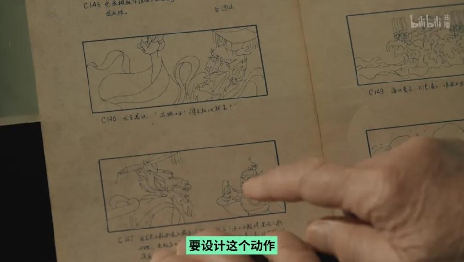 纪录片中,《哪吒闹海》的主创之一张澋源40年后重绘敖丙。
