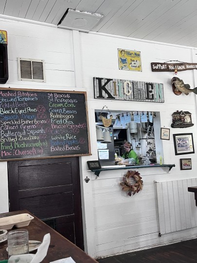 停好车我就立刻来了Whistle Stop Cafe排队取号。早上11点才开门的餐厅,我11点半抵达的时候就得等位1小时了,真是火热。门口就是这个非常有辨识度的标志。因为快秋天了,10月也是Halloween season,上面也有了一些秋日风格的装饰,好温馨。